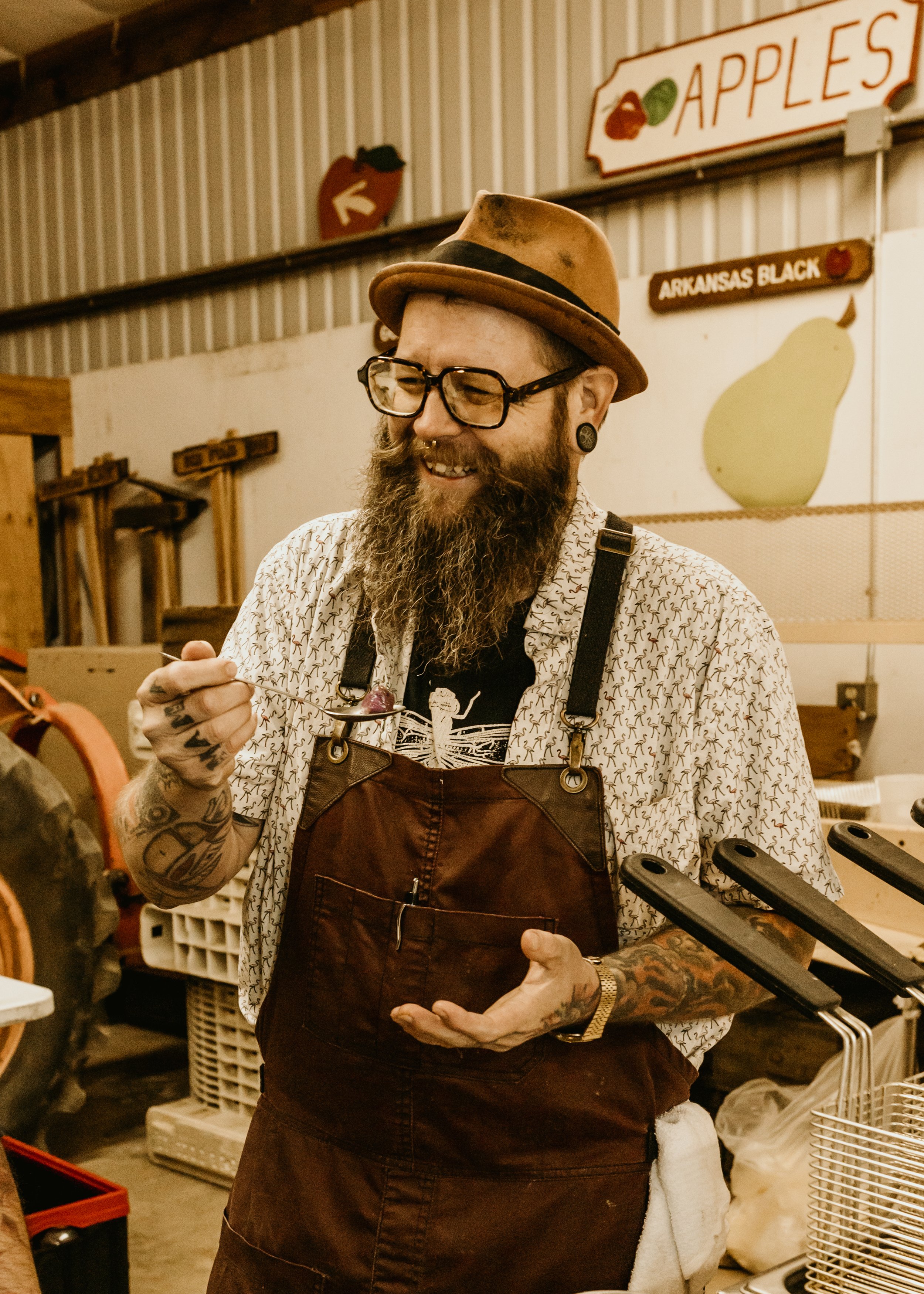 The menu is revealed at the table. Our chefs design the menu in the weeks or days leading up to the event, based on the freshest possible ingredients from the farm or locale. We like to keep the meal hyper-seasonal, artistic, and spontaneous! Menu/ingredient substitutions will be politely refused, but you always have a choice of our traditional or vegetarian menu when you purchase your tickets. If you have specific food allergies, we can advise you if any of the courses should be avoided.
